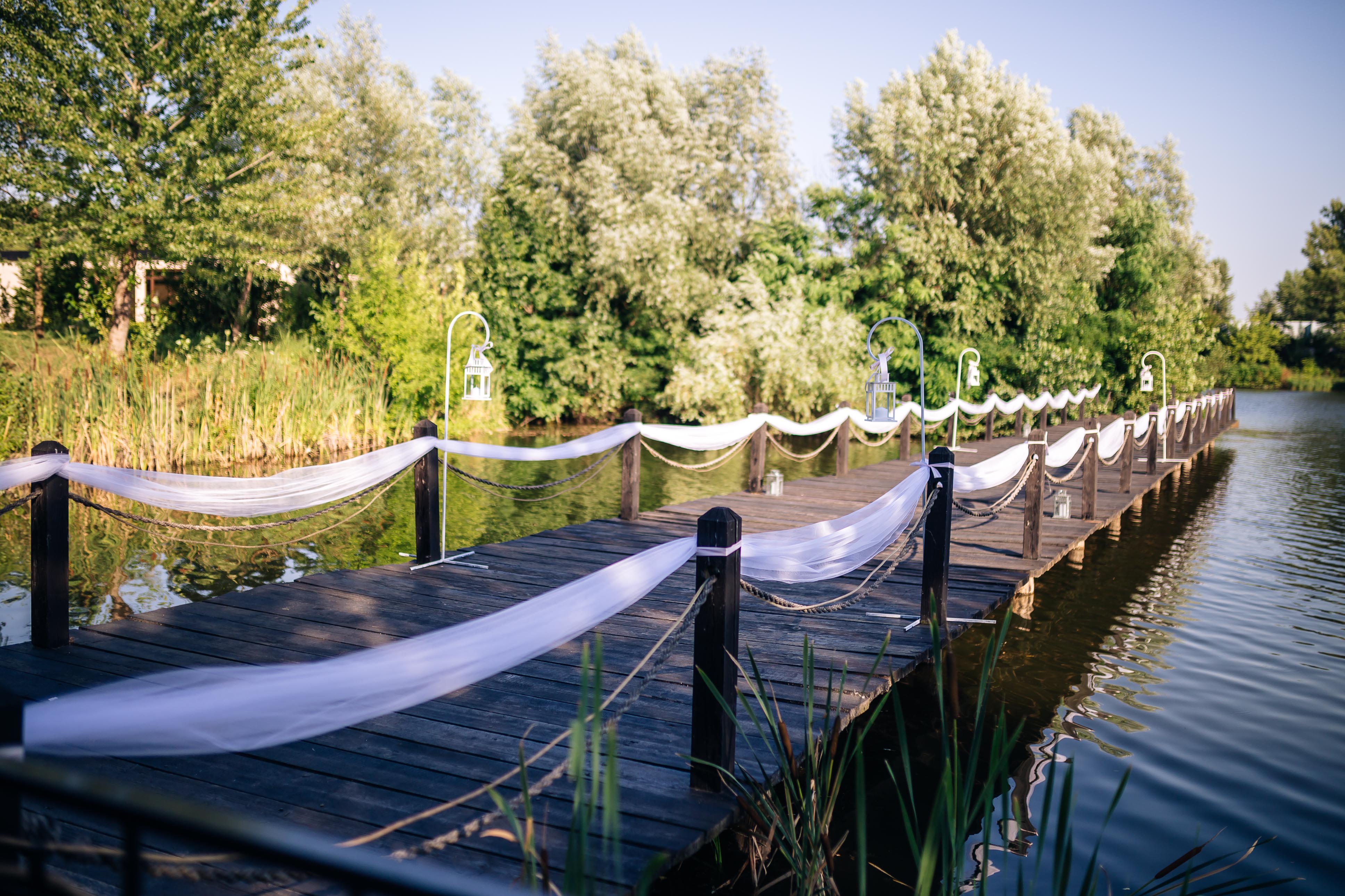 Participantii la evenimente dispun de acces la o gradina pe malul lacului si la ponton.