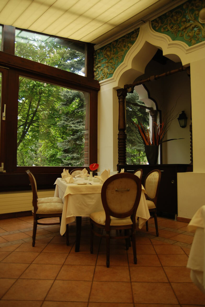In amintirea fauritorului de frumusete. Cu tablouri de admirat si tavane sculptate cu migala. Cu ferestre mari, ca sa prinzi apusul. Sau rasaritul. Cu mese rotunde sau patrate si candelabre dichisite. Ca tu sa ai lumina in farfurie. Sa-ti bucuri ochii si sufletul.