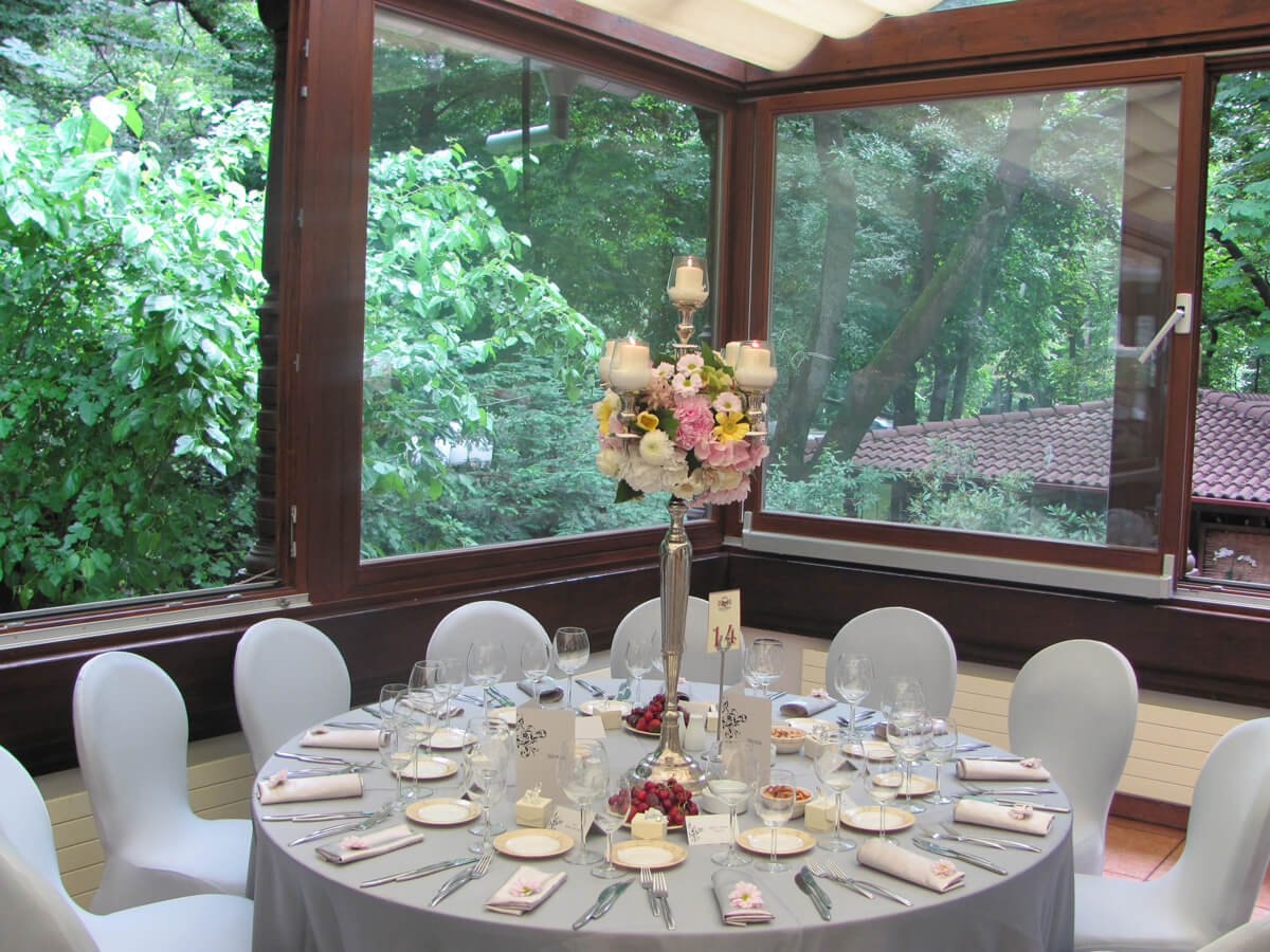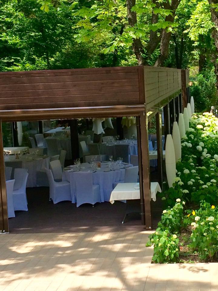 Pavilionul intim cu pereti din sticla cu apa curgatoare poate gazdui cu eleganta evenimente importante din viata dumneavoastra precum nunti si botezuri, dar si petreceri private sau corporate.