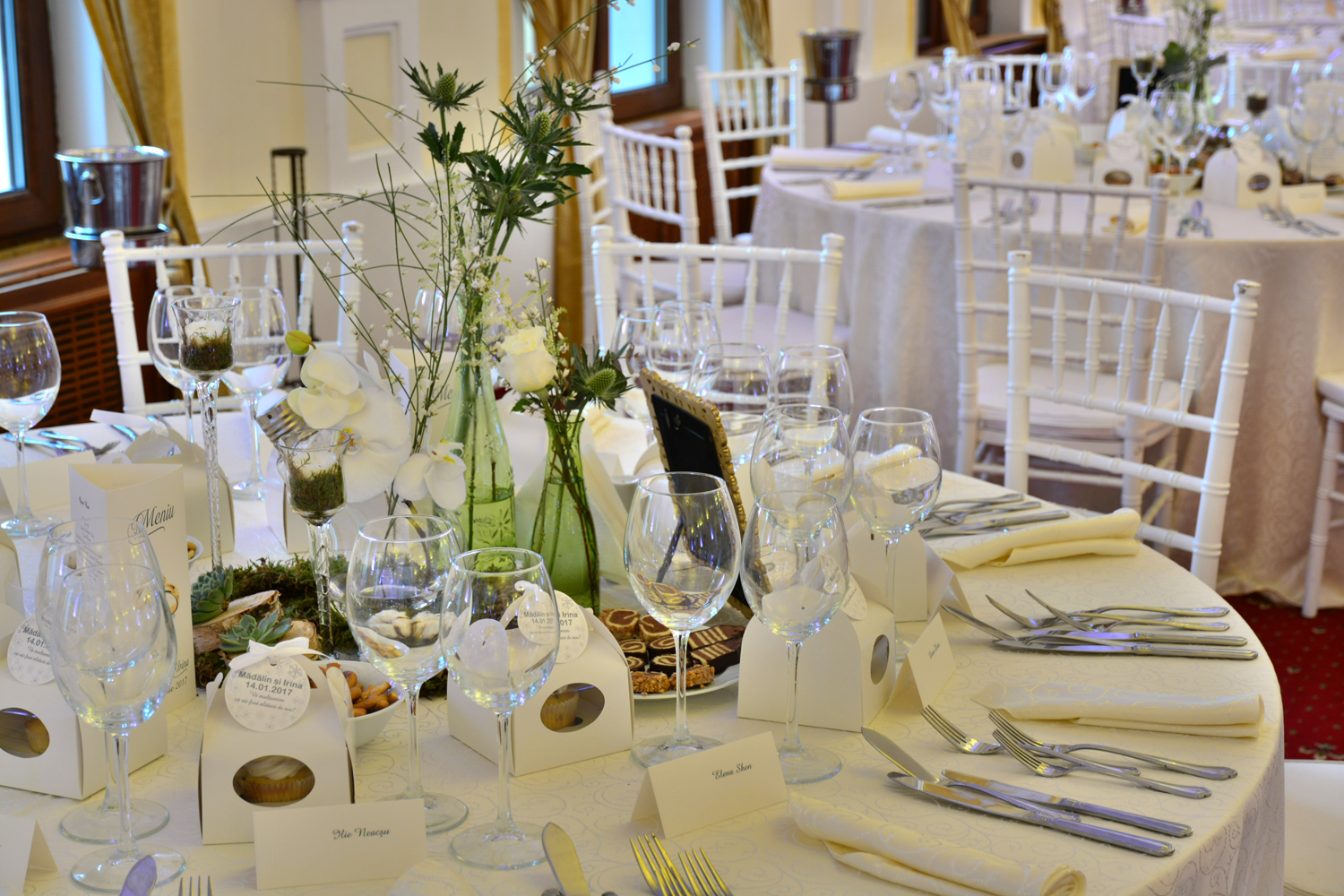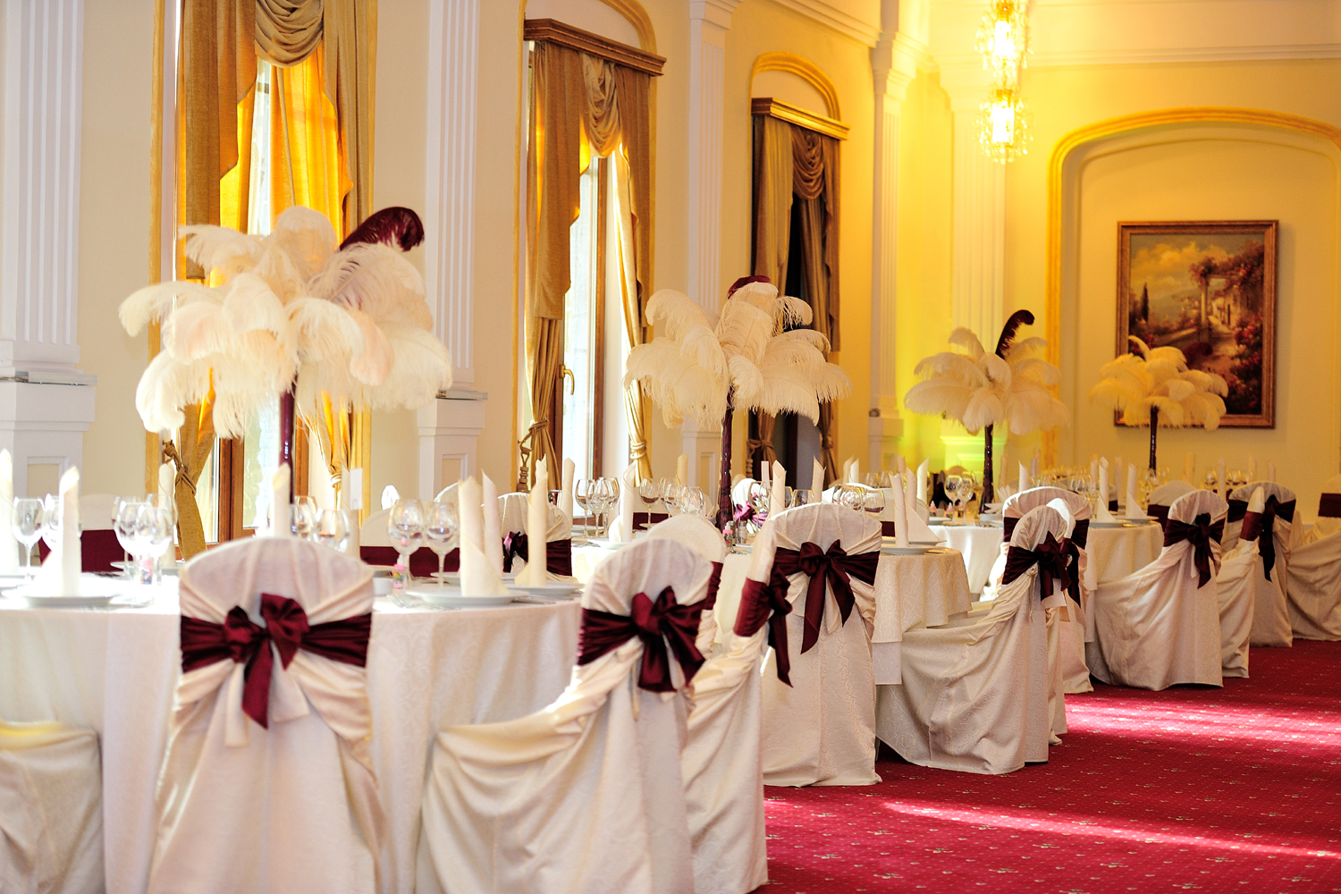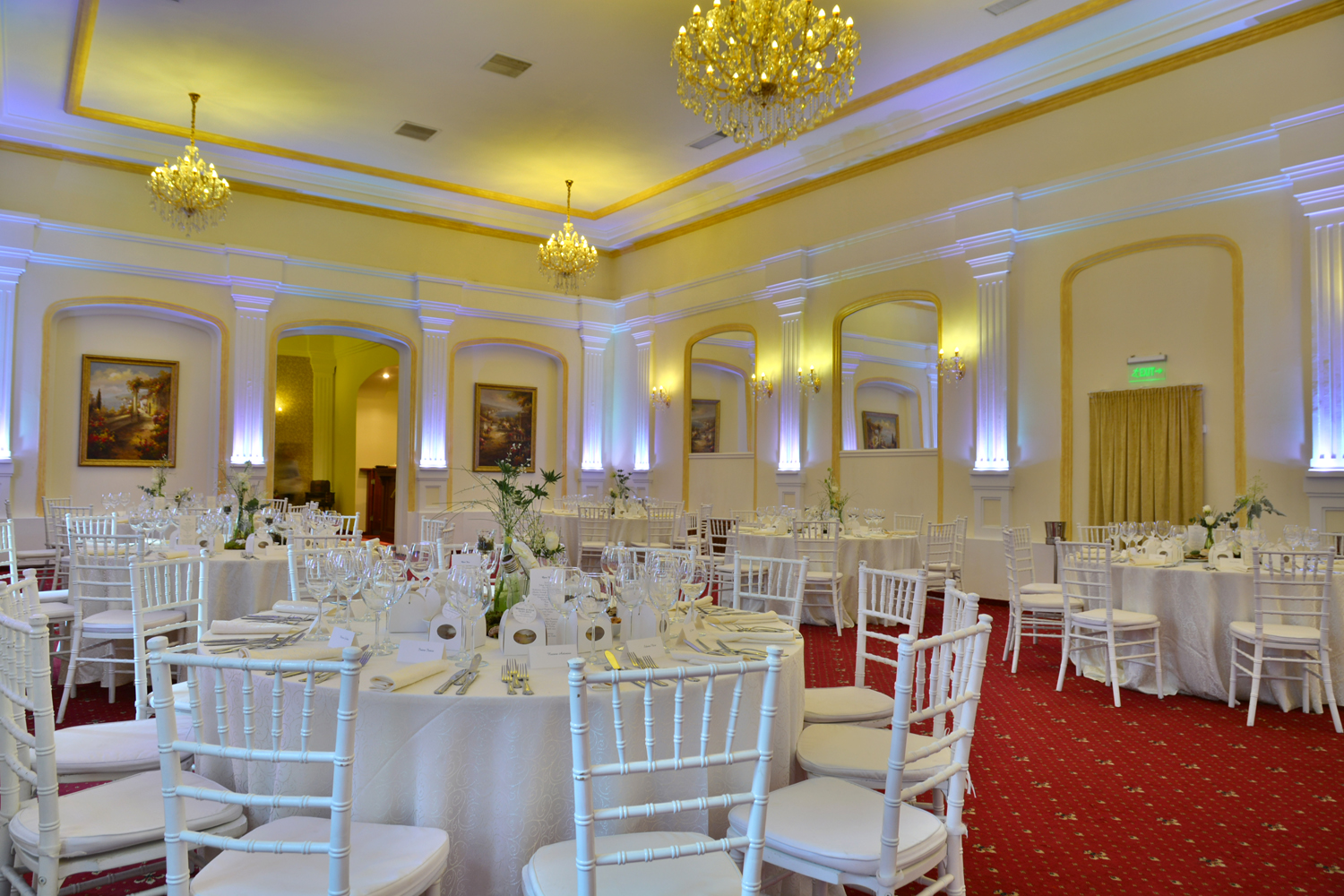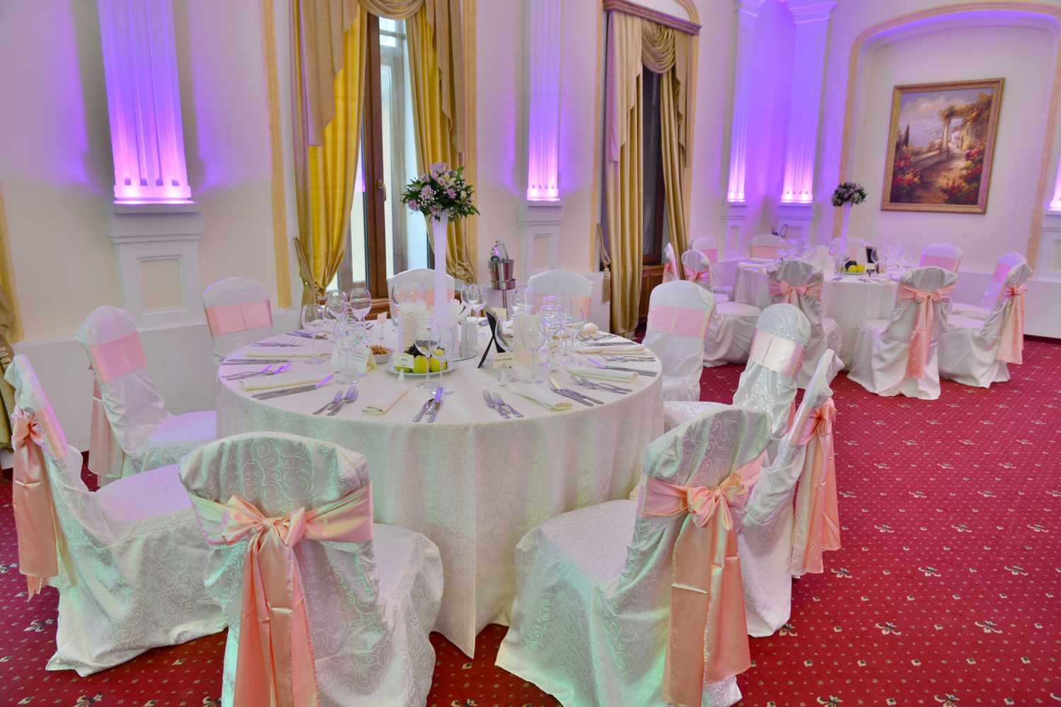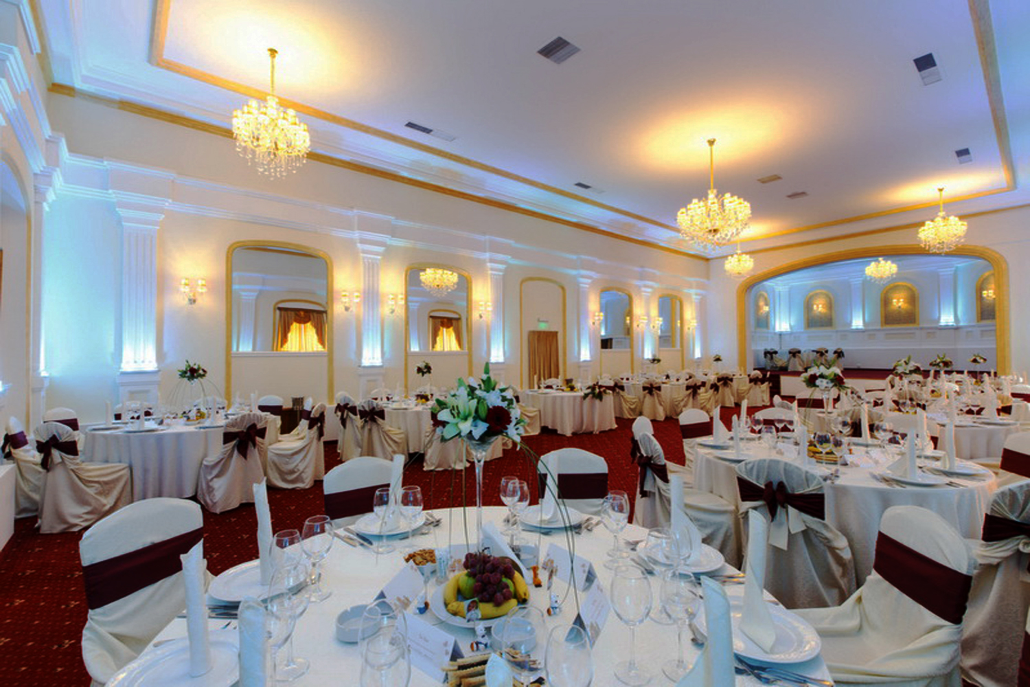 Grija pentru detalii este cea care desăvârșește ambientul acestei maiestuoase locații: candelabre impozante cu cristal venețian, lumini arhitecturale discrete, mobilier din lemn masiv, finisaje distincte, inserții Swarowski.