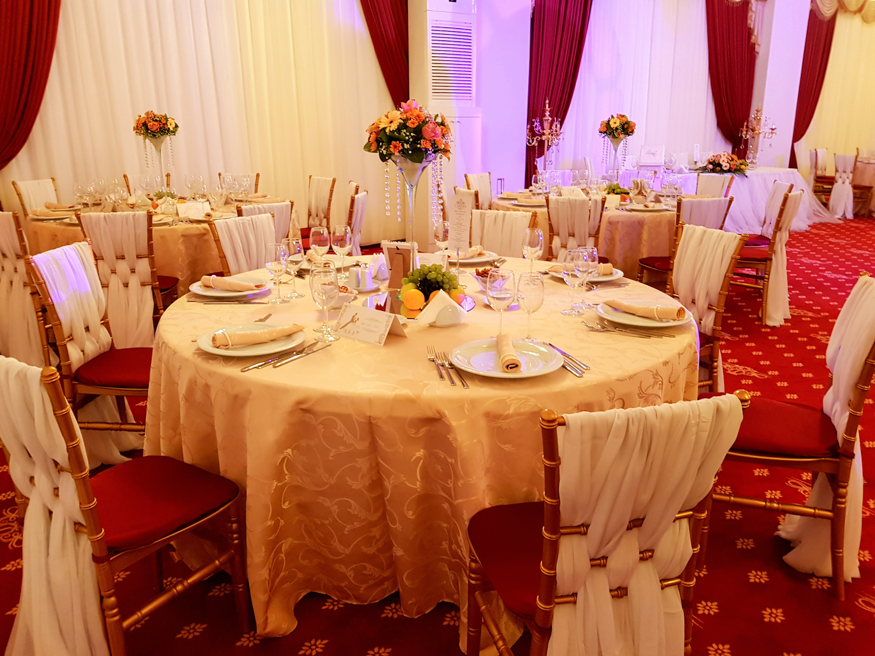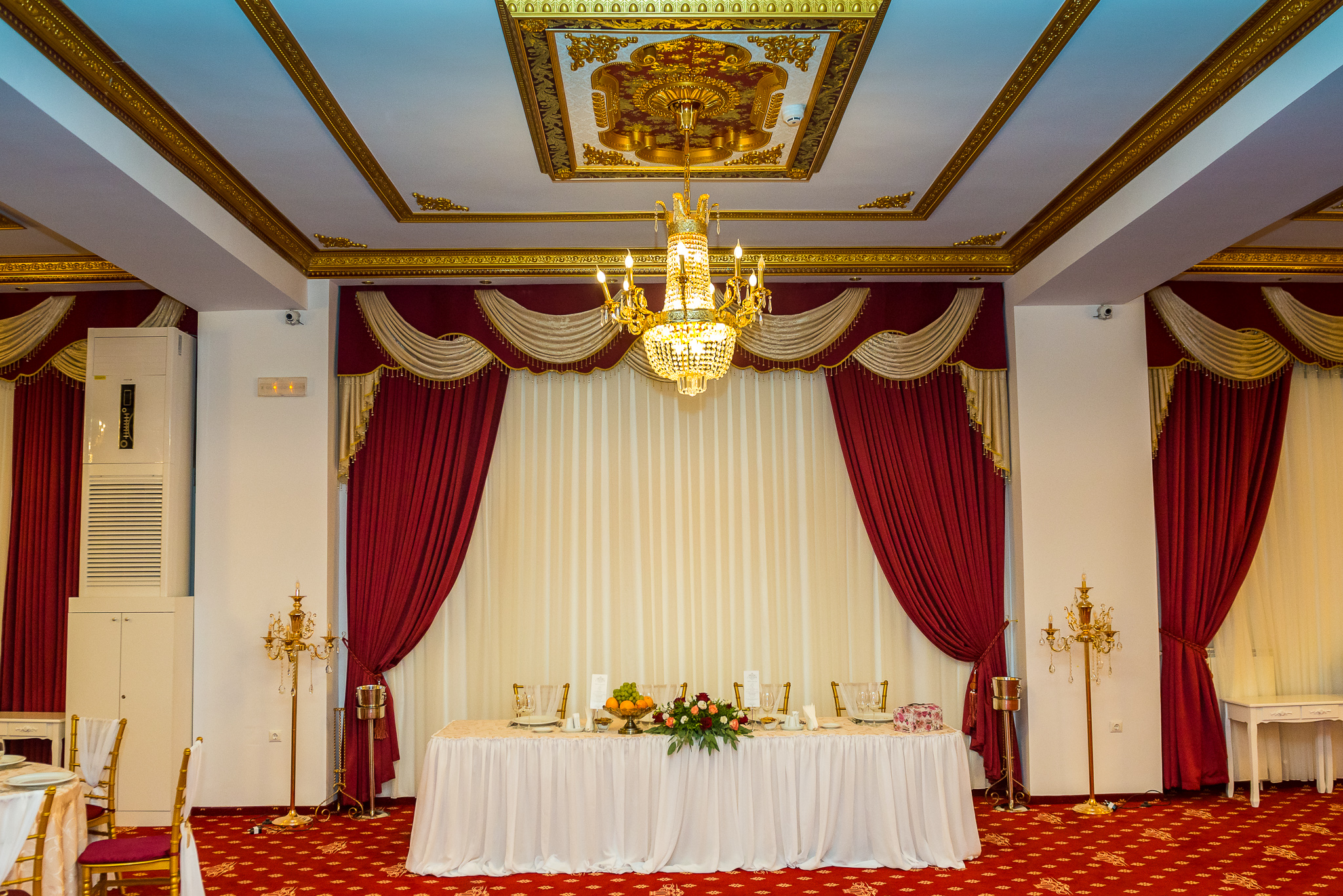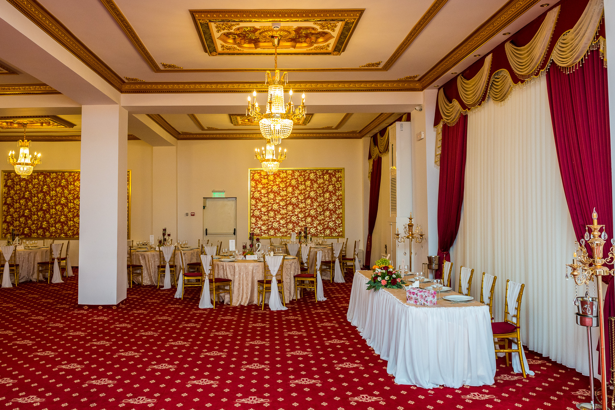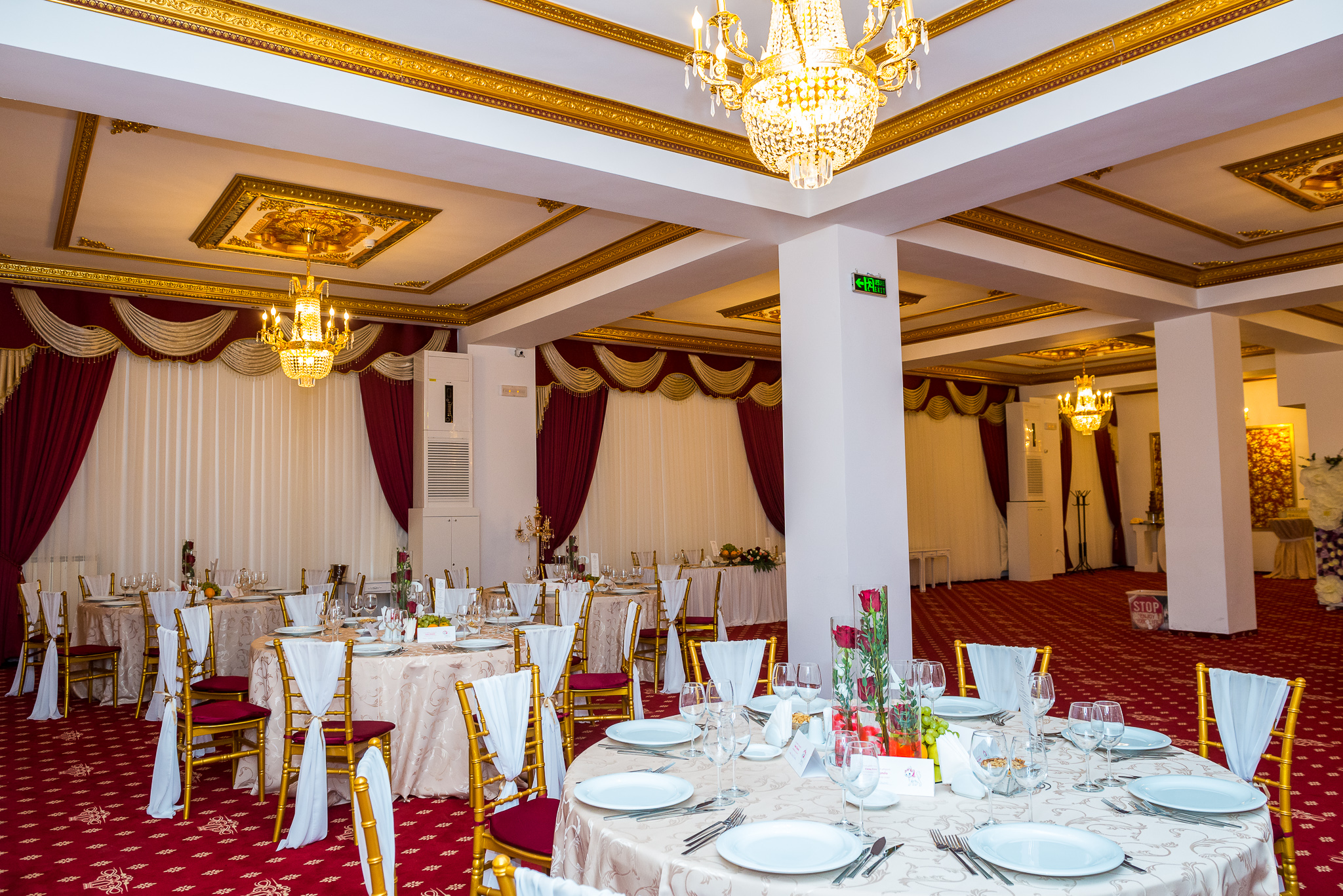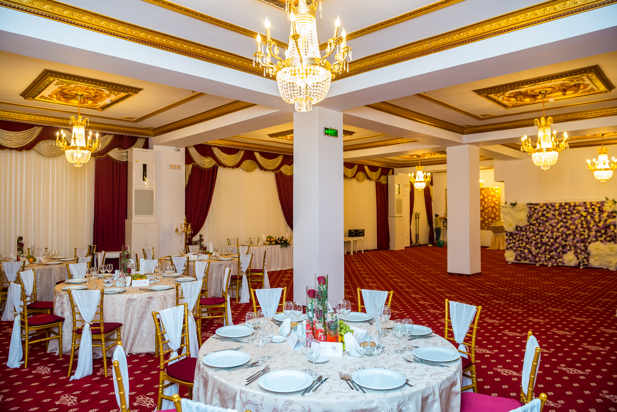 Cu un aer nobil, salonul Elegance este realizat in stilul arhitectonic empire. Coloristica salonului este realizata in doua culori : rosu imperial si gold. Tavanele sunt inalte, decorate cu cornise, candelabrele mari, precum draperiile impunatoare ne duce cu gandul la un palat regal.