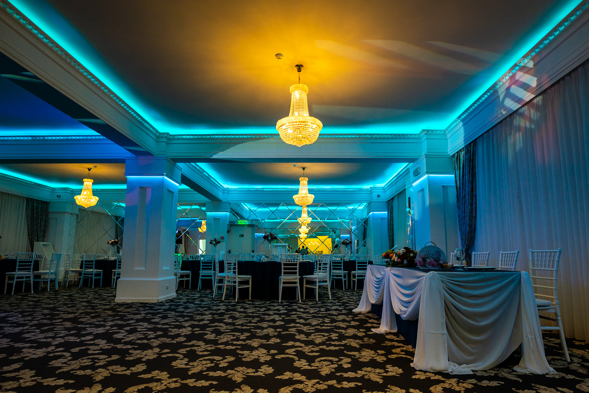 Iluminatul ambiental impreuna cu muzica influenteaza foarte mult atmosfera unui eveniment. Salonul L’amour dispune de lumini arhitecturale si va putem colora salonul in mai multe culori, in functie de preferintele dumneavoastra.