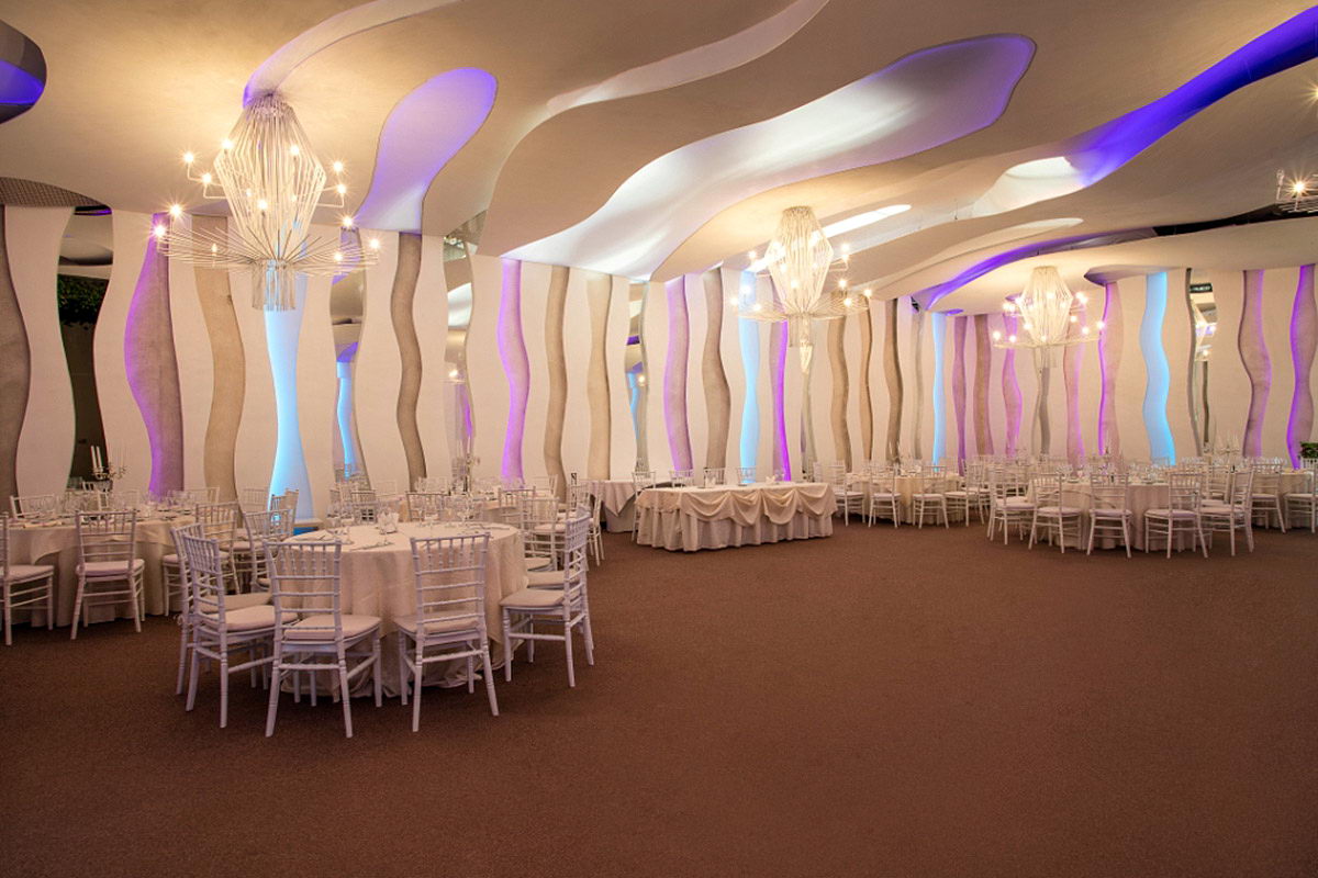 Stilul clasic si cel modern se imbina intr-un spatiul amplu, cu forme armonioase, cu lumini de efect, un design pretios, in tonuri calde, rafinate. Salonul are o suprafata de 400mp si un lounge generos.