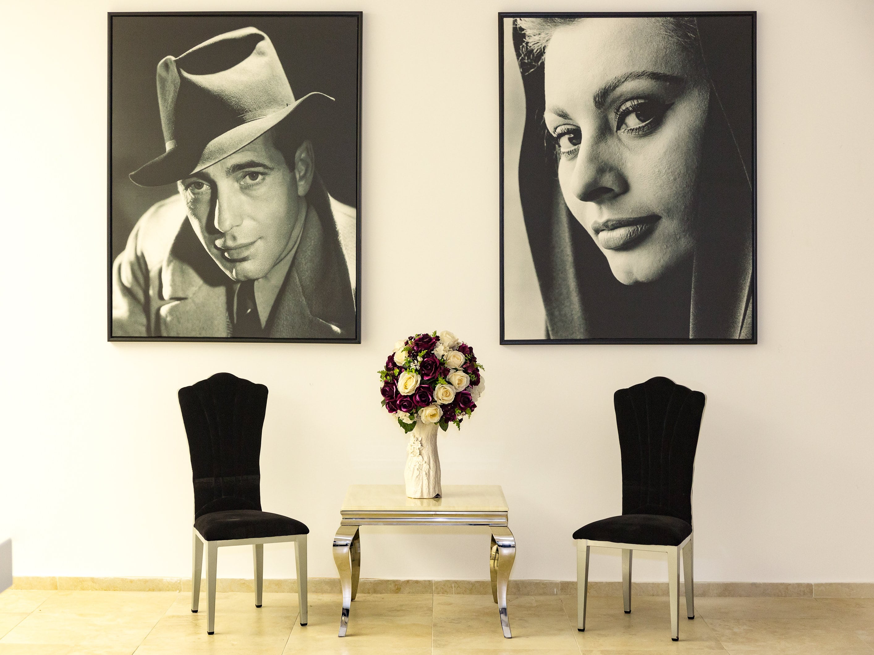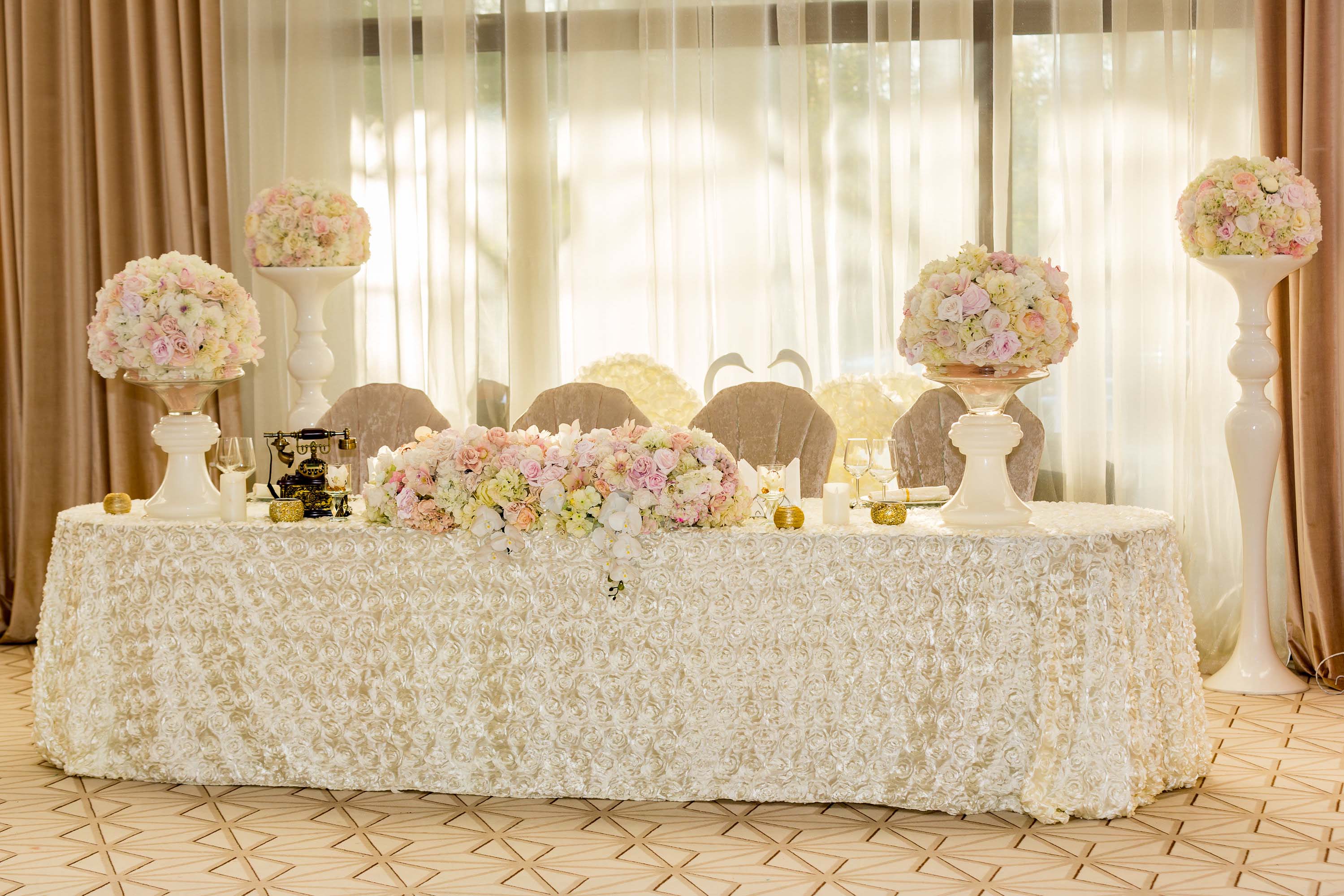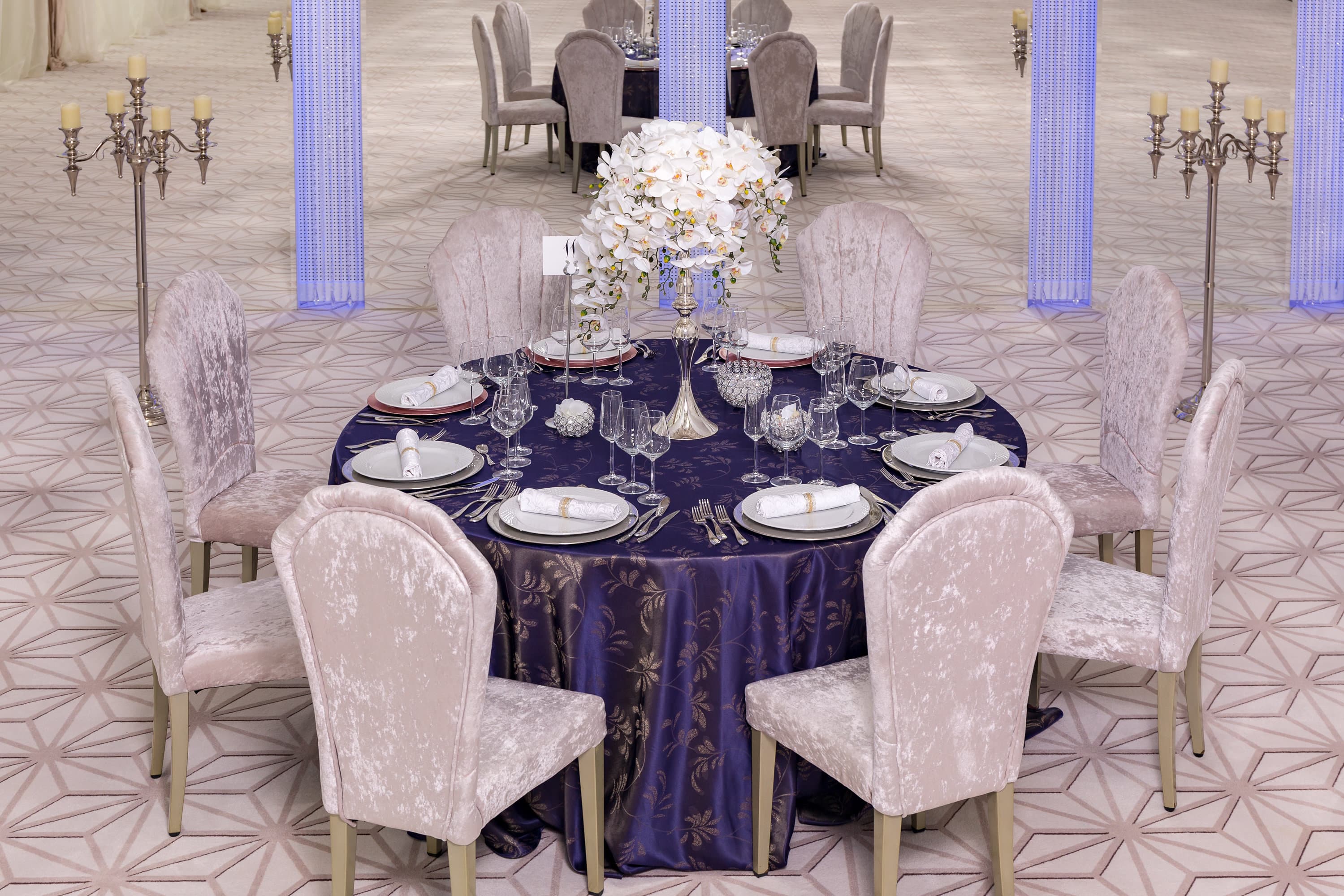 Candelabrele masive, luxuriante sunt realizate din cristale de Bohemia și desăvârșesc ambientul maiestuos, regal. Draperiile solide înnobilează și întregesc efectul spectaculos.