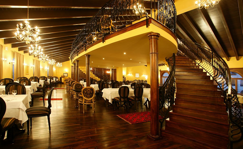 Interiorul oferă un cadru elegant şi rafinat, aici organizându-se petreceri private, mese festive, aniversări, petreceri pentru copii, etc.