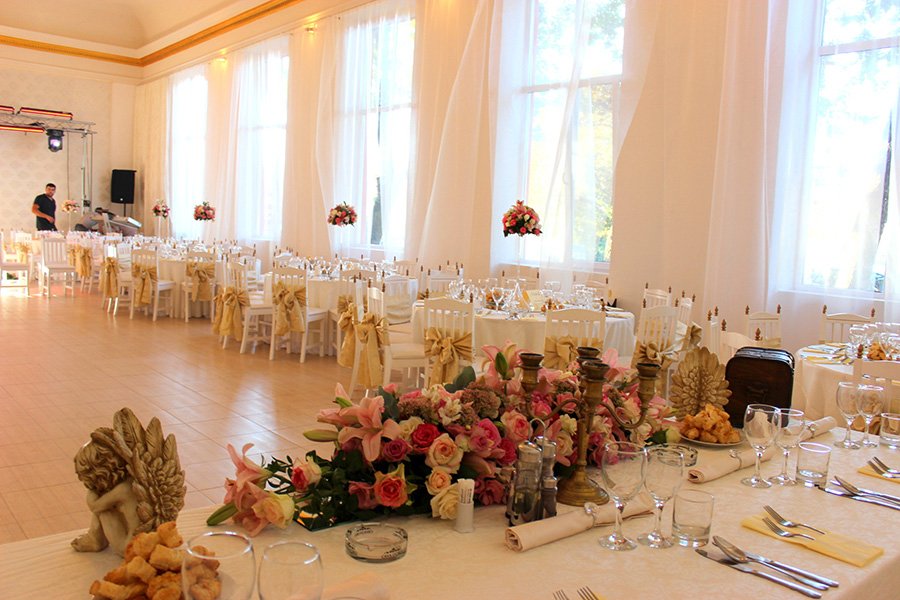 Terasa înverzită şi umbrită de arbori oferă posibilităţi de celebrare deosebite. De pildă, mesele festive şi cununia religioasă în aer liber, ca şi alegerea unui meniu aparte: grill, mâncăruri la proţap şi ceaun etc.